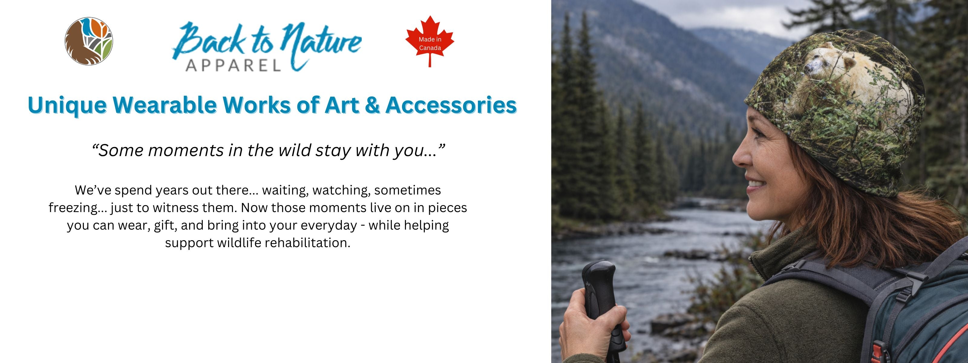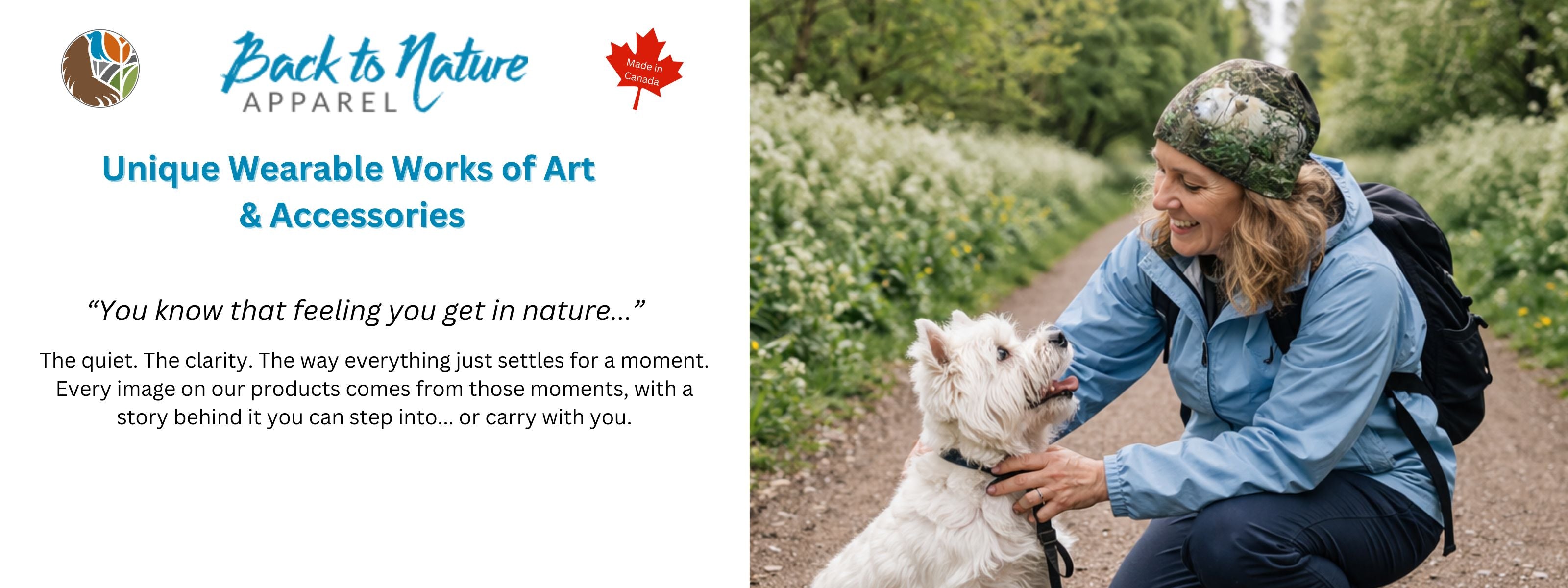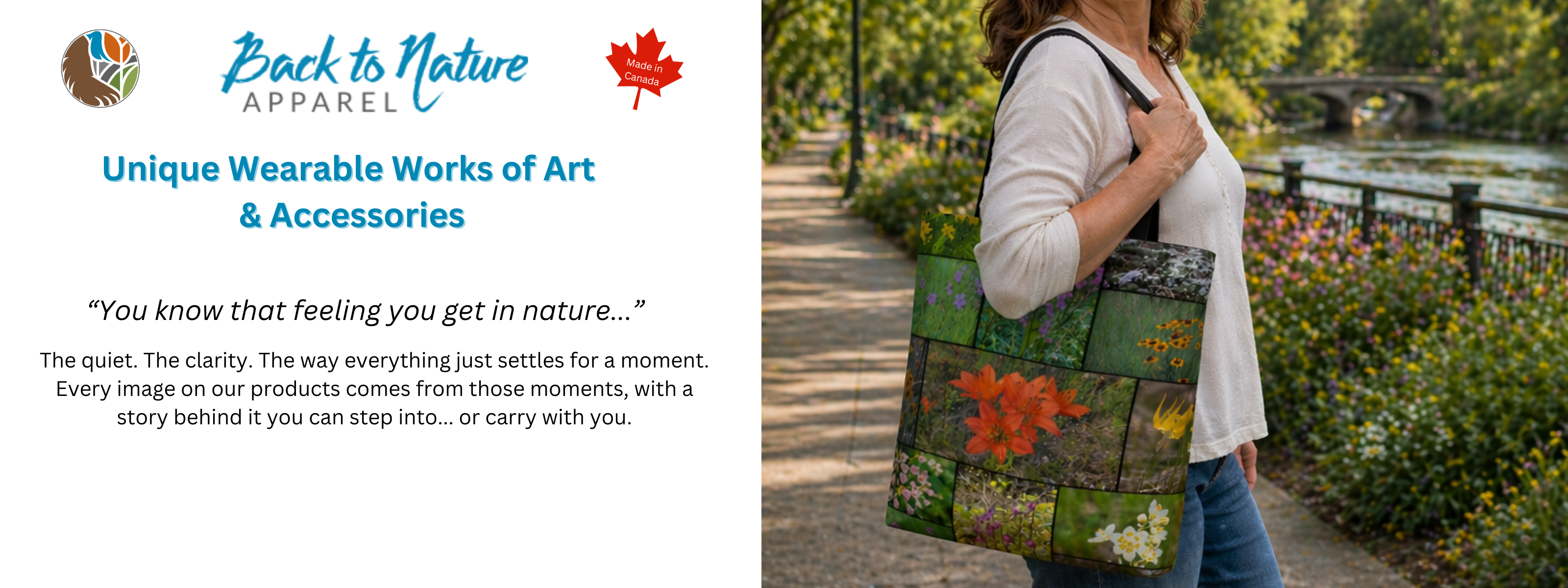 As a husband-and-wife team of wildlife photographers, our passion is to educate and inspire people to reconnect with nature through our lenses. Our stylish Canadian-made “wearable works of art & accessories” features our beautiful wildlife images and scenes of nature.